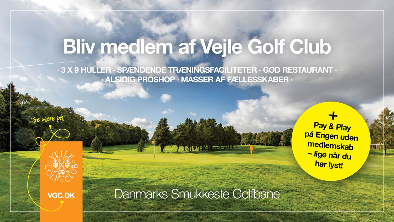 Bliv medlem af Vejle Golf Club og spil på Danmarks Smukkeste Golfbane, 3 x 9 huller, samt spændende træningsfaciliteter, restaurant med gode madoplevelser, alsidig proshop med dygtige trænere og en rummelig klub med masser af forskellige fællesskaber.