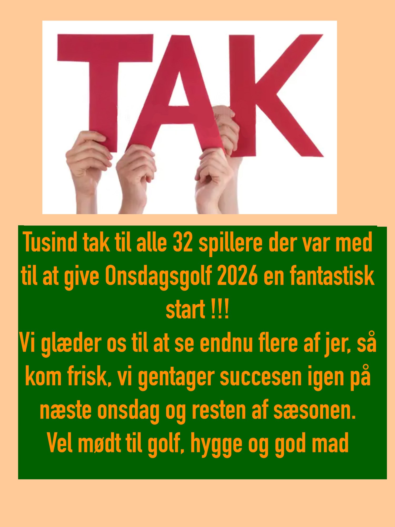 Alle er velkommen til vores onsdagsgolf. Vi spiller 9 huller og veksler mellem de forskellige sløjfer. Tilmelding via golfbox. Ses vi på onsdag?